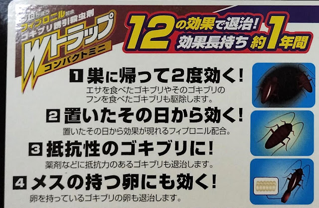 フィプロニル配合のゴキブリ誘因駆除剤です。
